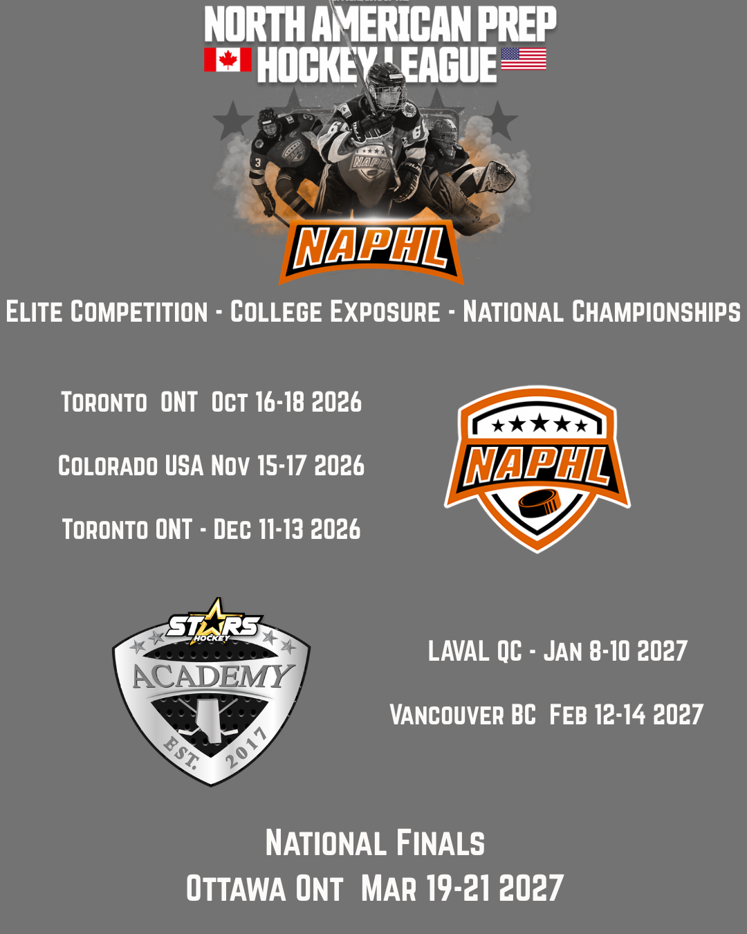 NAPHL: 6 national showcase weekends scheduled in advance, All Travel Included in the price